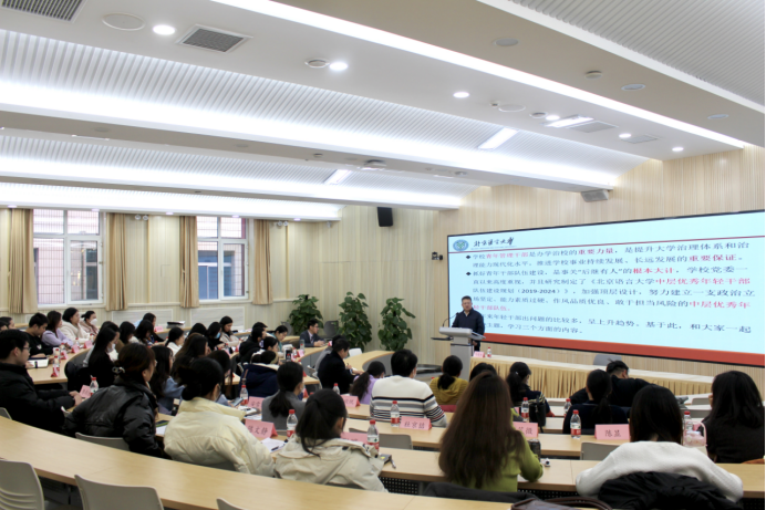 11月29日上午,北京语言大学第一期青年管理干部能力提升培训班在教二楼101开展专题培训。党委教师工作部、校机关党委邀请到学校党委副书记、纪委书记马贵生为大家作“学校青年管理干部如何履行好管理中包含的监督职责”的专题讲座。
