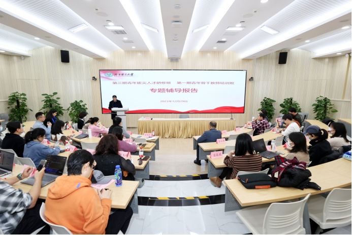 12月29日,北京语言大学第三期青年拔尖人才研修班、第一期青年骨干教师培训班在教二楼101开展专题培训,学校党委副书记魏晖为学员作《战略性人才及其成长》的专题辅导报告。此次培训由教师工作部部长、教师发展中心主任展明锋主持。