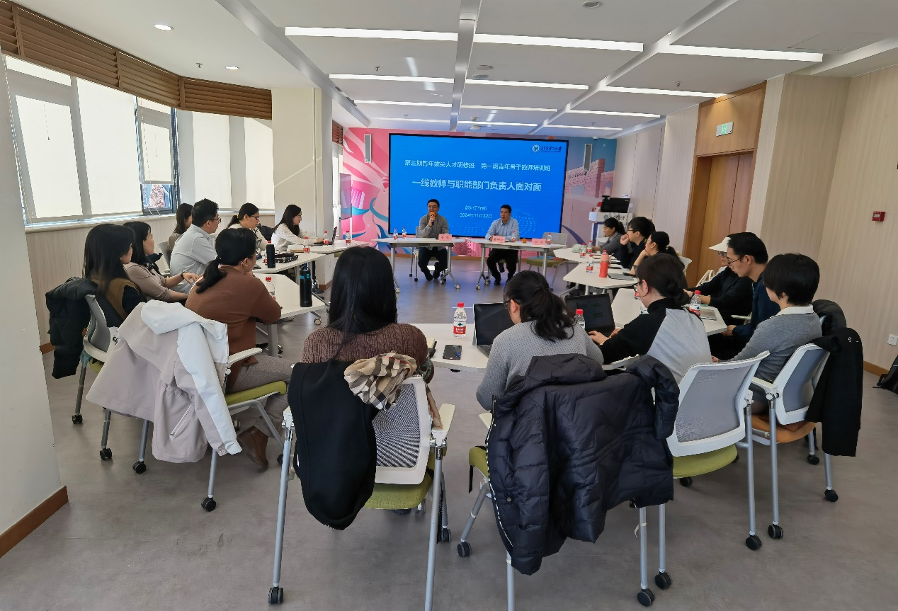 11月22日上午,由教师工作部(教师发展中心)主办的“一线教师与职能部门负责人面对面”交流活动在图书馆日新讲堂举行。本次交流活动邀请了发展规划与学科建设办公室主任颜伟和科研处副处长(主持工作)黄伟担任主讲,第三期青年拔尖人才研修班、第一期青年骨干教师培训班学员参加会议。教师工作部部长展明锋主持交流活动。
