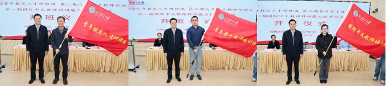 3月27日,学校2025年春季青年教师培训班暨第四期青年拔尖人才研修班、第二期青年骨干教师培训班和第一期国际中文教师科研能力提升培训班举行开班仪式,学校党委书记倪海东出席开班仪式,宣布开班并向学员代表授旗,讲授师德师风第一课。开班仪式由魏晖副书记主持,相关职能部门负责人和培训班学员参加开班仪式。本次培训班由党委教师工作部、党委组织部、人事处联合举办。