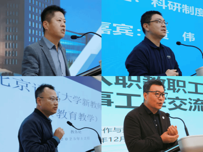 12月12日,人事处、教务处、科研处、国际合作与交流处负责人从学校人事人才相关工作、教育教学、科研制度与管理、外事纪律等方面开展专题培训。